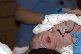 | letting out her first cry |